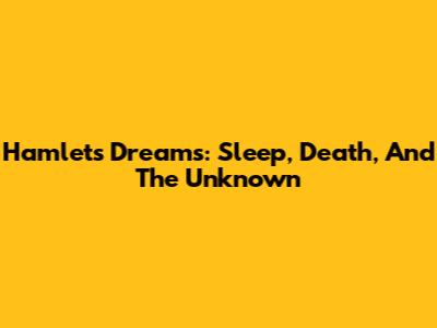 Hamlet's Dreams: Sleep, Death, And The Unknown