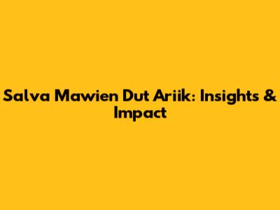 Salva Mawien Dut Ariik: Insights & Impact